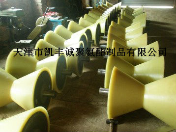 我公司生產(chǎn)的聚氨酯滾輪:聚氨酯是一種新興的有機(jī)高分子材料,被譽(yù)為“第五大塑料”,具有良好的耐油性、韌性、耐磨性、耐老化性。我廠生產(chǎn)的滾輪架用聚氨酯滾輪,采用進(jìn)口聚氨酯澆注而成,其拉伸強(qiáng)度、撕裂強(qiáng)度、耐磨強(qiáng)度等性能均比普通橡膠高3-5倍,目前滾輪架一般采用橡膠滾輪與金屬輪相結(jié)合的方法,而采用聚氨酯滾輪后可不再用金屬輔助,特別適用于風(fēng)塔生產(chǎn)線及管道鋼筒體的焊接加工。我們公司生產(chǎn)的這種聚氨酯滾輪具有以下特性:高承載,高動(dòng)態(tài)負(fù)荷,高硬度,良好的拉伸性和抗撕裂強(qiáng)度,變形小,回彈性好,高耐磨性,內(nèi)生熱低,良好動(dòng)態(tài)性能及抗沖擊性,不易不脫膠(即使膠面已磨損環(huán),也不會(huì)脫膠)。